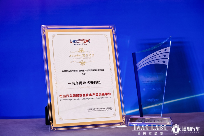 一汽奔騰蟬聯(lián) AutoSec 年度“杰出汽車網絡安全技術產品創(chuàng)新單位”稱號