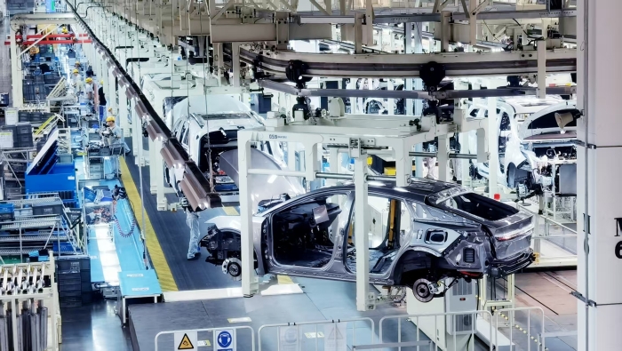 一汽豐田新能源工廠總裝車間底盤生產線的bZ5車身