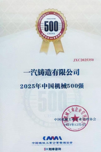 來(lái)源:一汽鑄鍛本網(wǎng)訊(特約記者 李純地)近日,2025年中國(guó)機(jī)械500強(qiáng)榜單正式揭曉,一汽鑄鍛憑借穩(wěn)健經(jīng)營(yíng)成效與前瞻戰(zhàn)略布局首次登榜,標(biāo)志著公司在機(jī)械工業(yè)領(lǐng)域的綜合實(shí)力與行業(yè)地位獲得權(quán)威認(rèn)可。
