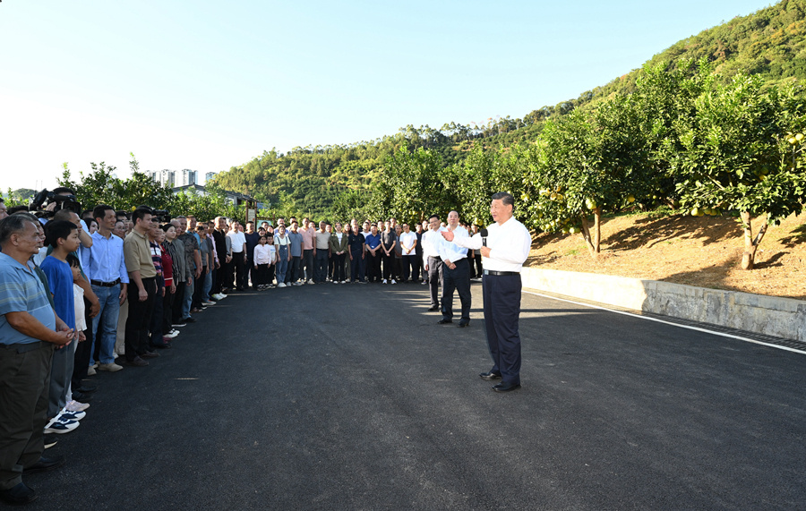 離開時,習(xí)近平同村民們親切道別。他叮囑,黨和政府要繼續(xù)加強(qiáng)對老區(qū)的政策扶持,老區(qū)廣大干部群眾要齊心協(xié)力、奮發(fā)圖強(qiáng)。他祝愿鄉(xiāng)親們的日子過得像金柚一樣又甜又美。